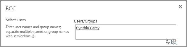 When BCC dialog appears, specify user Cynthia Carey (br\Cynthia) as the recipient as following.