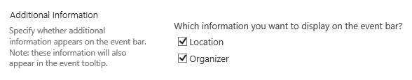 This function allows you to specify whether additional information (Location and Organizer) appears on the event bar; this feature is only available for Exchange Calendar.