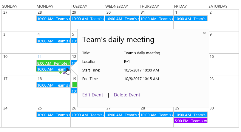 Roll-up and organize calendar events from SharePoint, Microsoft Exchange (2007SP1, 2010, 2013, 2016, 2019 and Exchange Online), Google or External Content Type into one calendar in SharePoint for straightforward planning of tasks or projects.