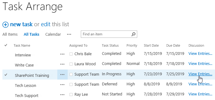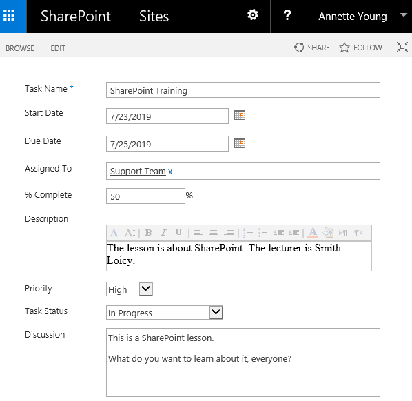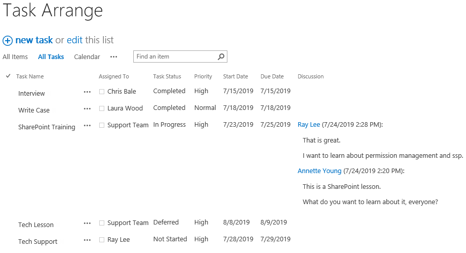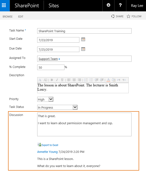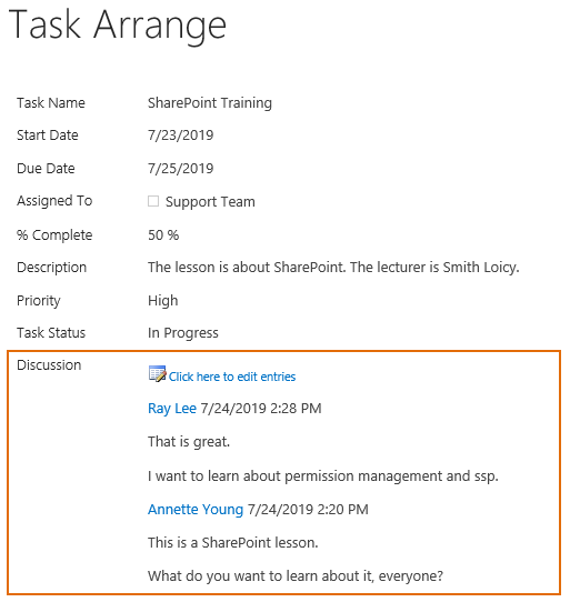 There is a SharePoint group named Support Team, the members need to discuss current task in a list.