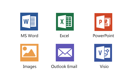 SharePoint PDF Converter supports a wide range of document types: MS Word (doc, docx), Excel (xls, xlsx, csv), PowerPoint (ppt, pptx), Visio (vsd, vsdx), Images (png, jpeg, tiff, psd), e-mail (msg) files and more.