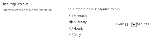 j. In the Recurring Schedule section, you can further specify the scheduler to run this import job automatically according to your needs (manually, every number of minutes or hours or days).