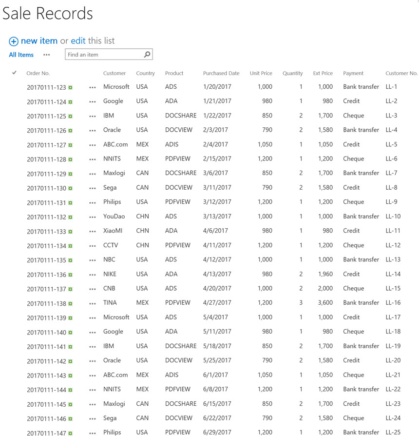 k. Return to the SharePoint list, all records are already imported in the list as following.