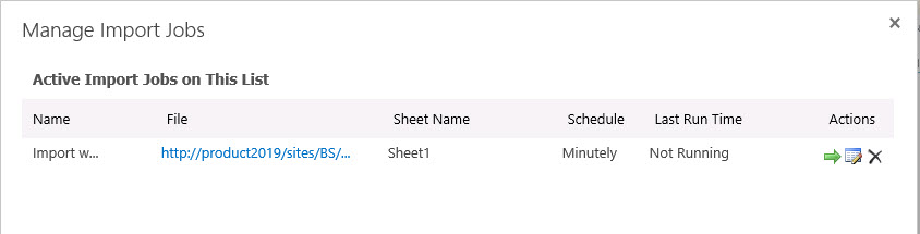 Excel Import enables you to import any Excel spreadsheet stored on remote file servers, including FTP, SharePoint document library, etc., to SharePoint list automatically. You need to create an import job first so that data will be imported based on a scheduled plan.
