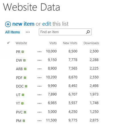 Supposed there is an Excel file in the SharePoint document library, it stores the website data.