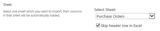 e. Once an Excel file is uploaded, the included sheets will be loaded and available for import. In the Sheet section, select a sheet which you want to import.
